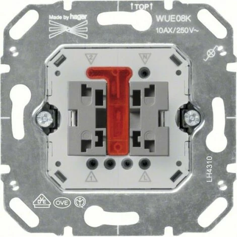 Wipp-Kontrollschalter, verwindungsfester, entgrateter und Oberflächen veredelter Metalltragring mit Justierhilfe. Kompakte Bauform mit geringer Einbautiefe und komplett versenkten Befestigungskrallen. Keine elektrische leitende Verbindung zwischen Metalltragring und Befestigungskrallen. Krallenbefestigung mit Schnell-Gang-Gewindeschraube und Rückführungsmechanik. LED Beleuchtung (rot) frontseitig gesteckt vormontiert. Ohne Schalterausbau: Austausch Beleuchtung sowie beschriftete Prüfkontakt zur Spannungsmessung. Leitungsanschluss im 45 Grad Winkel mit Einführungshilfe.