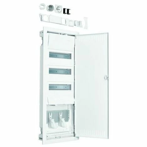Hager Hybrid, volta, Unterputz, 36PLE, 1 Montageplatten, Steckdose und Stahlblechtür. Installationskleinverteiler unter Putz aus Kunststoff, geprüft nach DIN VDE 60670-24 und DIN 43 871. Bemessungsspannung 400 V / 50 Hz. Schutzart IP30, Bestehend aus Kunststoff