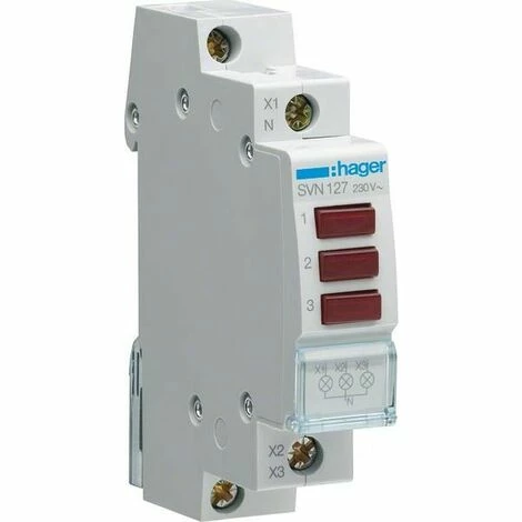 Geliefert wird: Hager LED-Leuchtmelder 3fach rot,230VAC SVN127, Verpackungseinheit: 1 Stück, EAN: 3250615721716